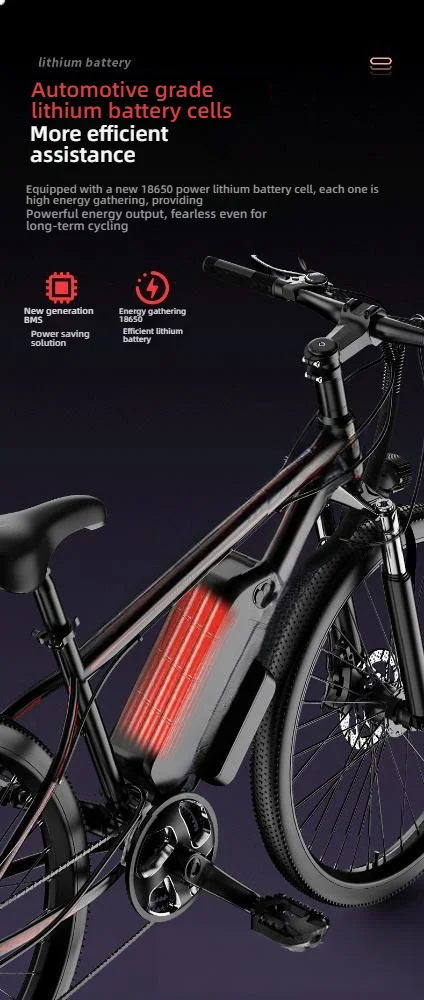 26 Inch Mountain Assisted Electric Bicycle, Lithium Battery, Off-Road Variable Speed Electric Bike, Youth Electric Bikes